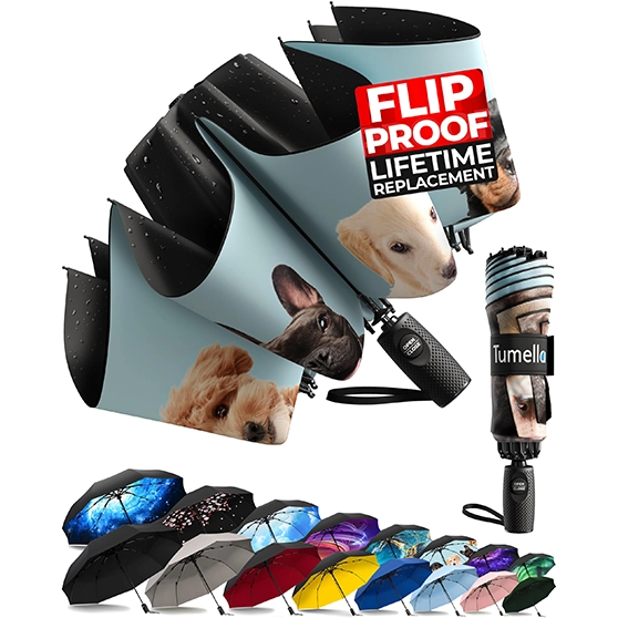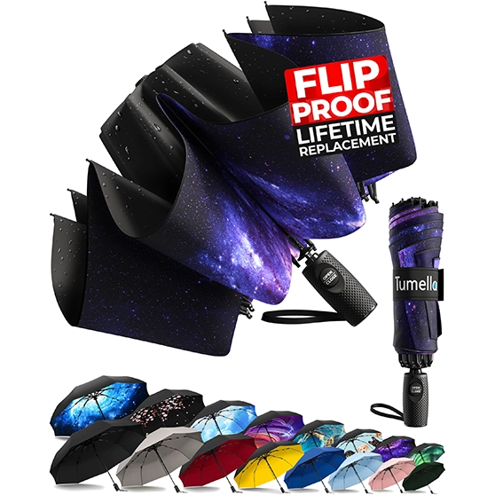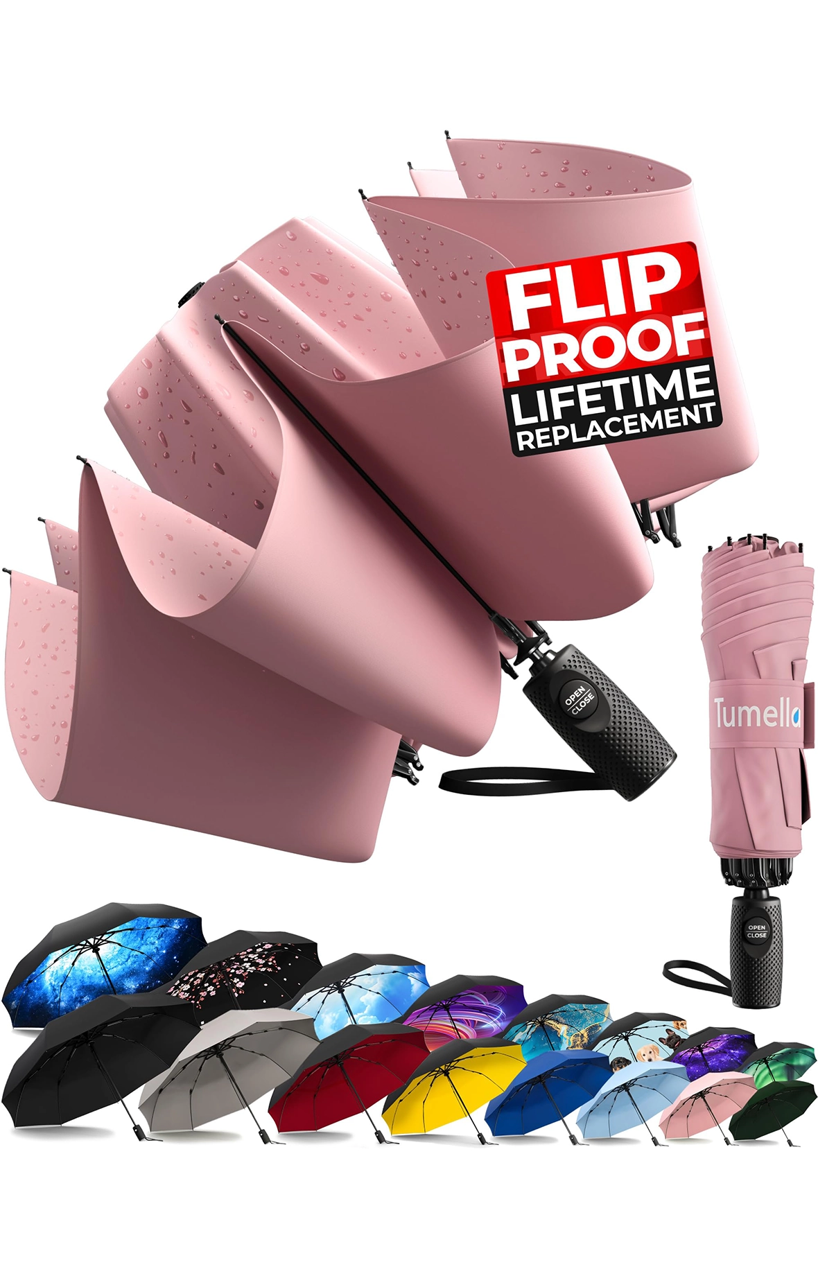 Stay dry in any storm with TUMELLA’s compact, durable, and automatic folding umbrella—windproof, lightweight, and fits perfectly in your car or backpack.