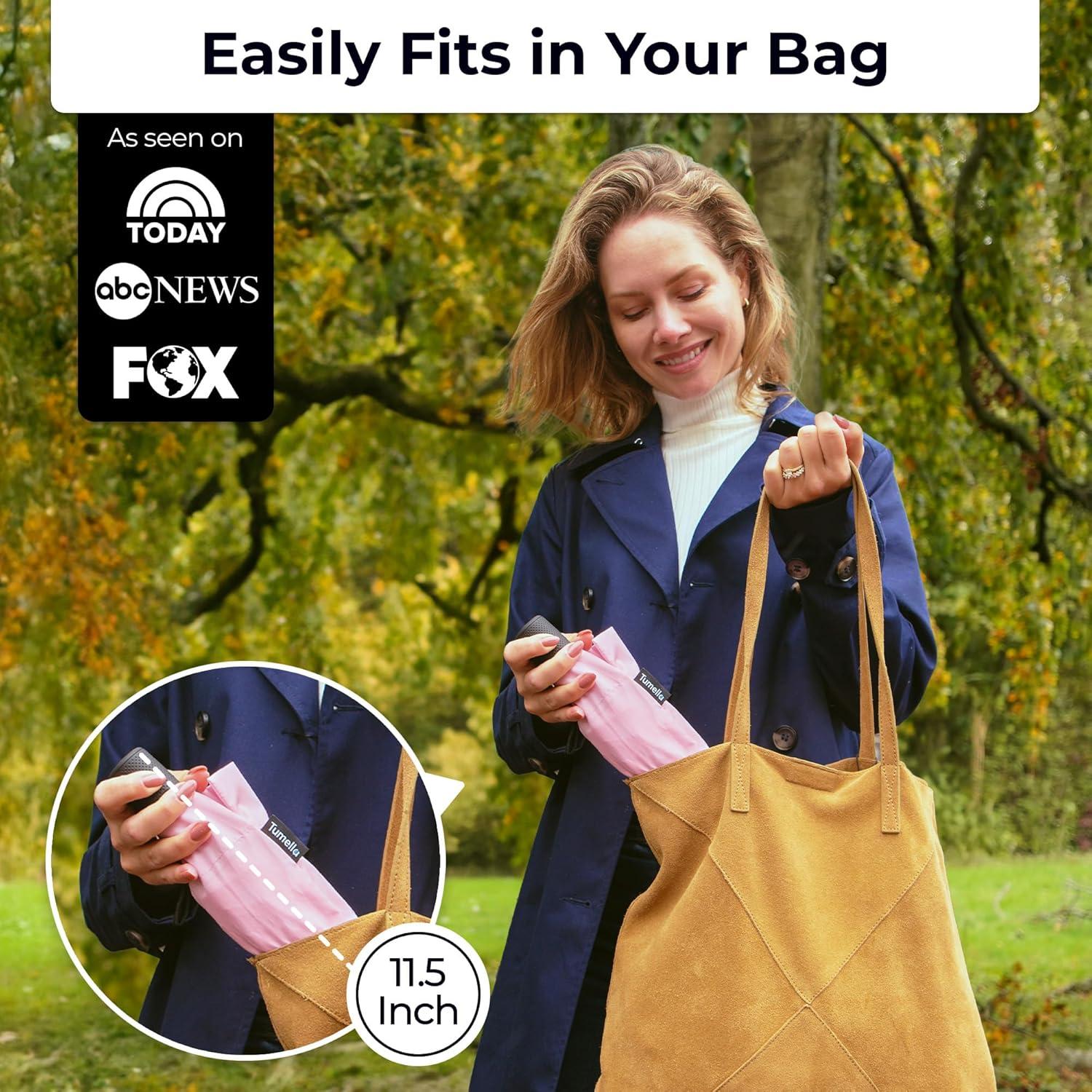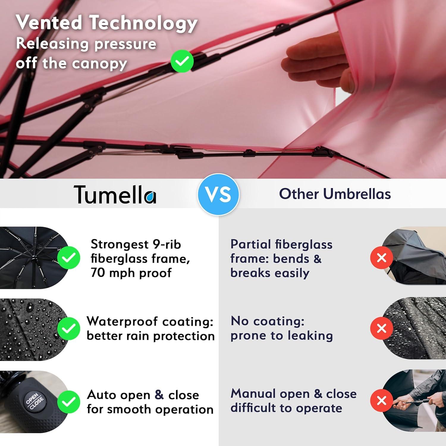 TUMELLA Strongest Windproof Travel Umbrella (Compact, Superior & Beautiful), Small Strong but Light Portable and Automatic Folding Rain Umbrella, Durable Premium Grip, Fits Car & Backpack(1-pack Soft Pink)
