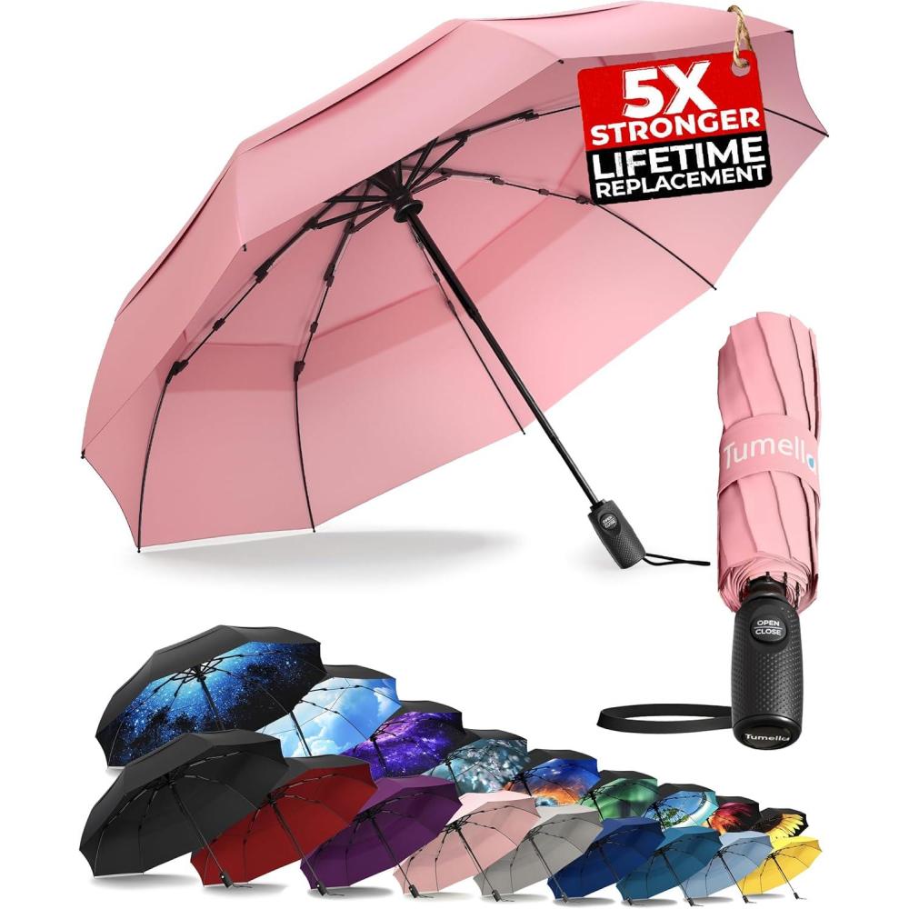 Be the first to review “TUMELLA Strongest Windproof Travel Umbrella (Compact, Superior & Beautiful), Small Strong but Light Portable and Automatic Folding Rain Umbrella, Durable Premium Grip, Fits Car & Backpack(1-pack Soft Pink)”